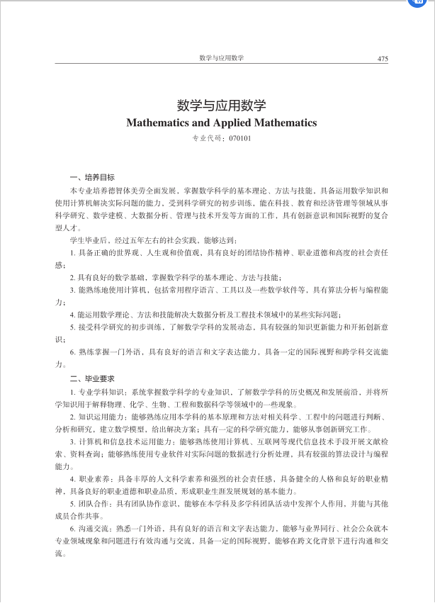 2021版数学与应用数学专业培养方案2022年修订版