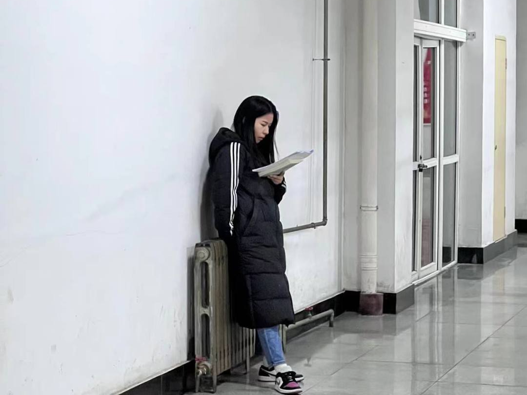 在顺利通过笔试之后,他们又紧锣密鼓地进入到复试环节。由于当时并不能确定复试环节是否可以在线下进行,冯佳龙和韩悦玲最初只准备了线上的面试问答。后期收到线下复试的通知,冯佳龙需要准备物理实验,而韩悦玲则要面临综合笔试。棘手的是,韩悦玲复试所需的专业参考书在市面上买不到,最后在学校图书馆找到了相类似的参考书代替。两个人的任务都不轻松,在复试之前,冯佳龙和韩悦玲两个人戏称:“几乎住在了图书馆里。”