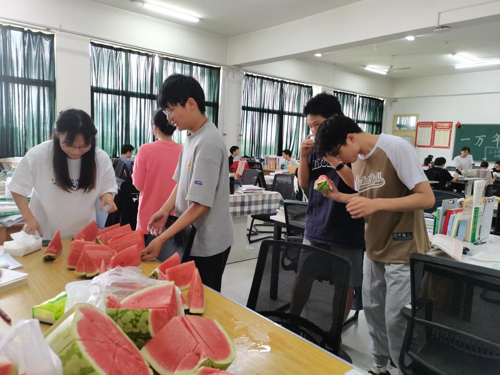在鄠邑校区,廖书记一行看望慰问了备考研究生考试的百十余名2020级本科学生,并为同学们送去西瓜解暑。廖书记先是叮嘱大家,留校期间提高安全意识,遵守校规校纪,在学习生活中遇到困难及时与辅导员联系。然后,充分肯定了考研学生的学习精神和决心,表扬了他们不畏酷暑、坚持学习的坚毅品质,最后,表达了学院对同学们的美好祝愿,预祝各位考研顺利,旗开得胜,马到成功。折延宏副院长和两位辅导员还深入学生询问了大家在校遇到的学习和生活中的困难,希望同学们劳逸结合,增强安全意识,注意寝室、饮食、交通等安全。