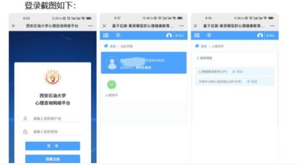 心理咨询网络平台 ”,输入账号及密码(账号为考生准考证号,密码为本人身份证号),点击“心理测评”,完成心理健康测试(两部分)。