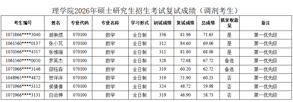 裸聊 2026年硕士研究生招生复试成绩公布第一批(数学)
