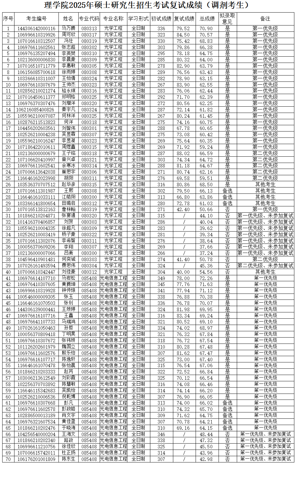 裸聊 2026年硕士研究生招生复试成绩公布第一批(光学工程、光电信息工程)