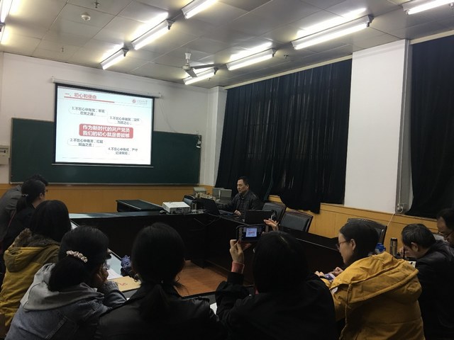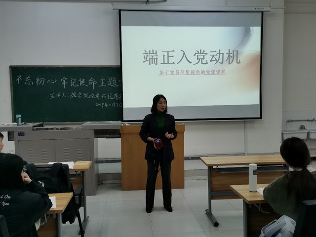 按照校党委“不忘初心,牢记使命”主题教育的工作安排,院党委对处级干部、支部书记讲授党课进行了安排和落实,院班子成员、全院十个党支部书记分别以“不忘初心、牢记使命”、党史教育、立德树人、核心价值观、十九大精神等为题,为师生上了19次党课。图为院党委书记廖敏、院长傅海威分别在为学院师生讲党课。