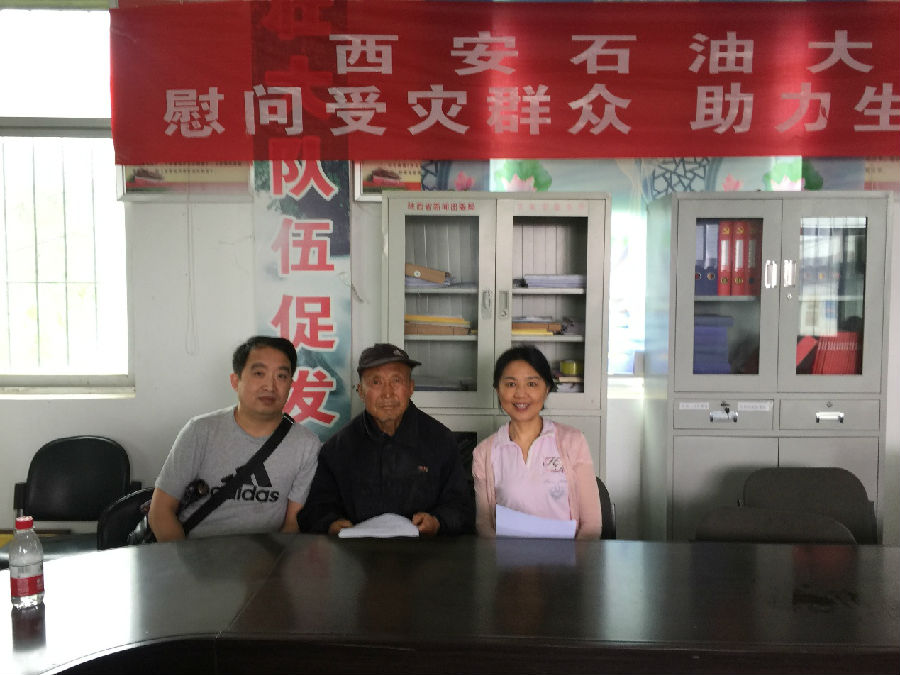 全体师生的心,校工会主席袁玎带领校工会干部以及粮油等扶贫物资,冒雨前往永寿县永平镇坚固村,看望并慰问受灾群众。