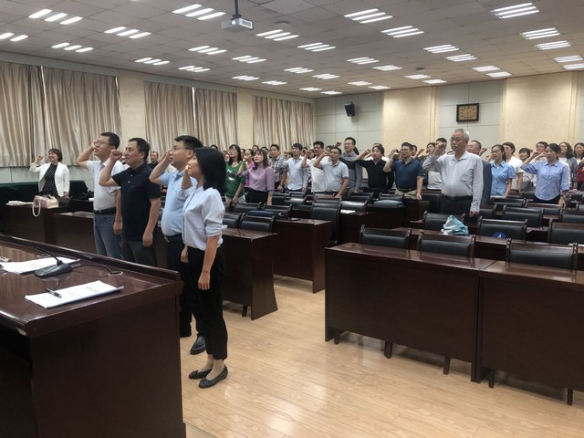 全体教职工着正装在第三会议室举行了庄严的教师宣誓仪式。宣誓仪式由院党党委书记廖敏主持。
