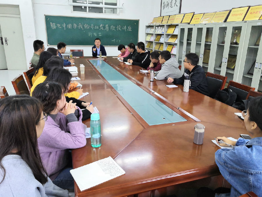 在鄠邑校区111室举办题为“腾飞中国和我的专业发展”第一场专题讲座,副院长折延宏教授主讲、党委副书记马小刚主持,2019级全体研究生参加。