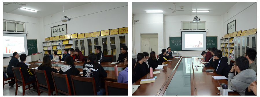 在鄠邑校区111会议室举办本学期第二场研究生专业发展讲座,院长傅海威教授主讲,党委副书记马小刚主持,2019级全体研究生参加。