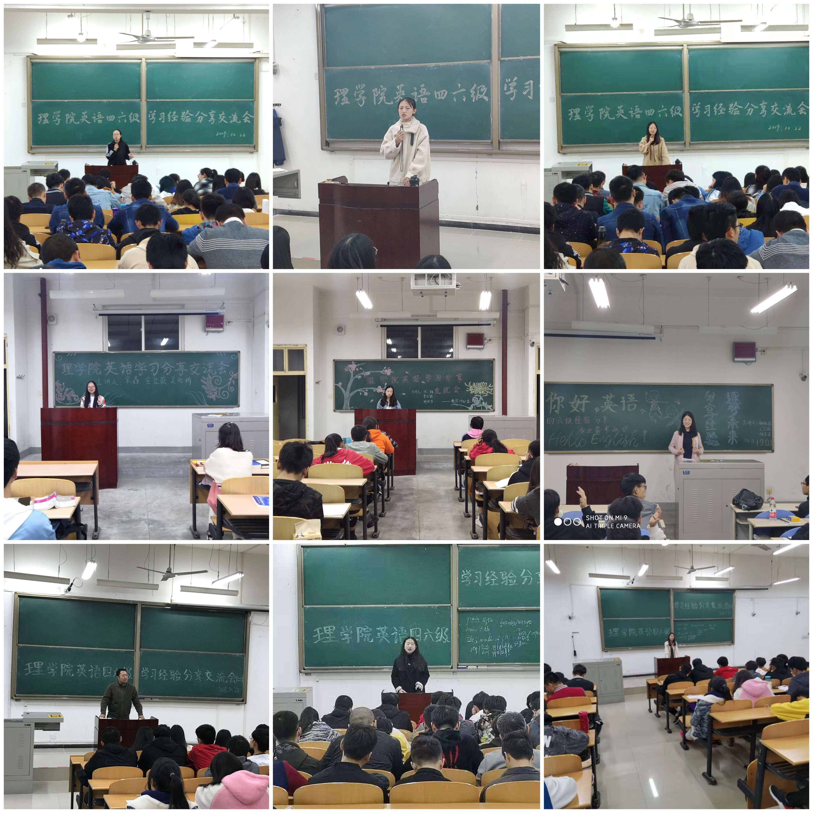 于近期在全院范围内组织开展了三场次英语学习经验交流会。党委副书记马小刚先后主持数学类专场、物理类专场,辅导员康伟主持2019级专场,王晶晶、安佳薇、丁伟等16名同学先后主讲,学院全体未通过英语四级本科生参加。