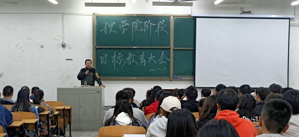 在鄠邑校区B112教室组织召开本科生阶段目标教育大会,学院党委副书记马小刚主讲,200余名本科生参会。