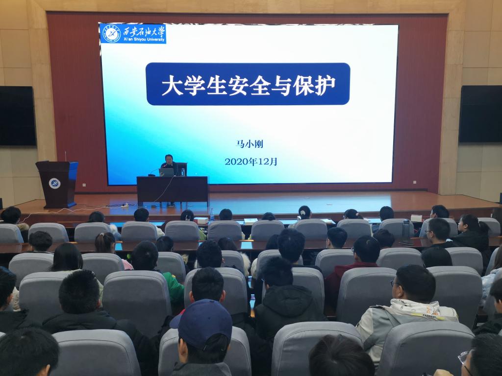 于12月23日晚在鄠邑校区弘石报告厅举办了“大学生安全与保护”专题讲座。学院党委副书记马小刚主讲,学生管理办公室主任丁亦喆主持,辅导员康伟、林晔及学院400余名本科生参加。