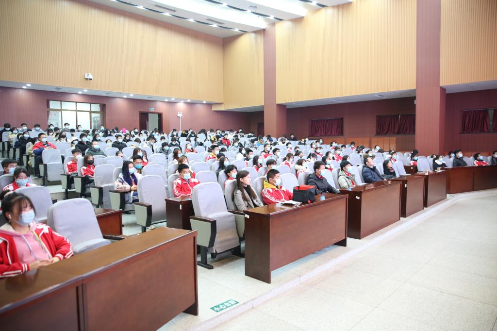 党委书记廖敏,副书记马小刚,学生管理办公室主任丁亦喆,各年级辅导员和本科生党员、入党积极分子共200余人听取党课。