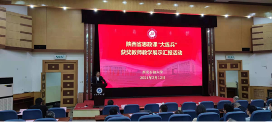 活动现场陈军斌副校长介绍了陕西省和我校思政课大练兵活动情况,四位获奖老师精湛的业务水平进一步推动了我校思政课程与课程思政的有机结合,为学校赢得了荣誉。此外,校党委副书记张木对四位获奖教师及展示活动给予肯定并提出中肯的建议,为课程思政建设提供组织保障。程永清副校长总结教学竞赛是一种综合实力的展示,思政课教师应该苦练教学基本功,加强理论修养,提升教师教育教学水平,提高课堂教学质量,认真落实习近平总书记在学校思想政治理论课教师座谈会上的重要讲话精神。