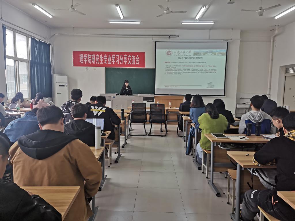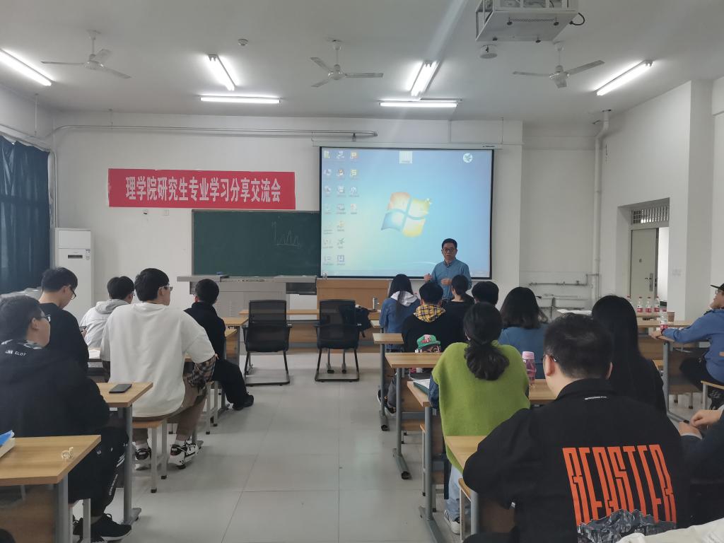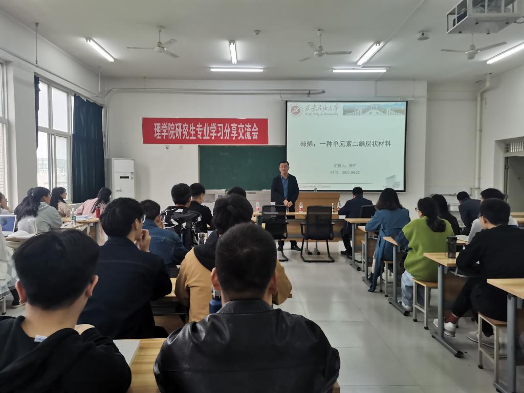 于4月22日至4月23日在鄠邑校区志远楼502室举办了为期两天的研究生专业学习分享交流会。副院长折延宏教授、陈国祥教授,物理学科郭文阁教授受邀出席交流会。学院45名研究生逐一进行了专业学习分享交流,会议由研究生辅导员庞波主持。
