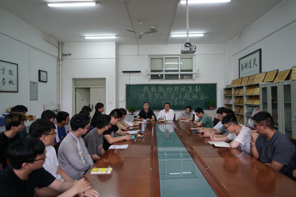 在鄠邑校区志远楼111会议室举办了“我的成功可以复制”示范主题班会。光电1701班考研学生代表张澳、谷子硕、龙万江、安梦迪、高诚5位同学作分享交流,光电1801班全体同学、各年级辅导员及班长参会。示范主题班会由裸聊