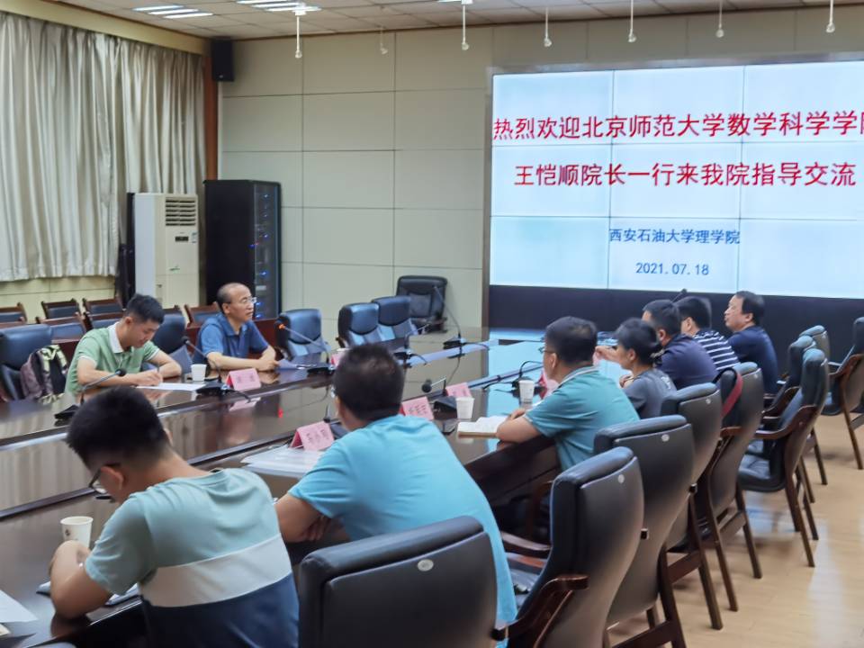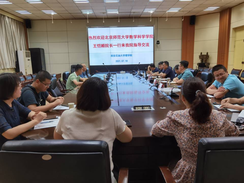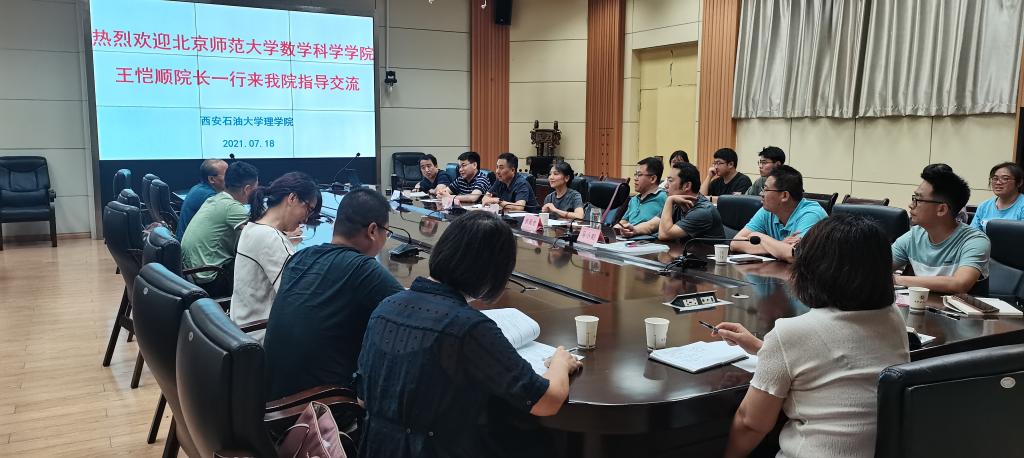 的历史沿革,学科发展现状,师资队伍建设现状,学院机构设置等情况。王恺顺院长详细介绍了北京师范大学数学科学学院的发展现状,本硕博招生规模,专业课与公共课教学情况,两校区办学等情况。双方就数学学科专业建设、人才引进、管理服务、教师的教学工作量等问题进行了深入的交流。此外,双方还就裸聊