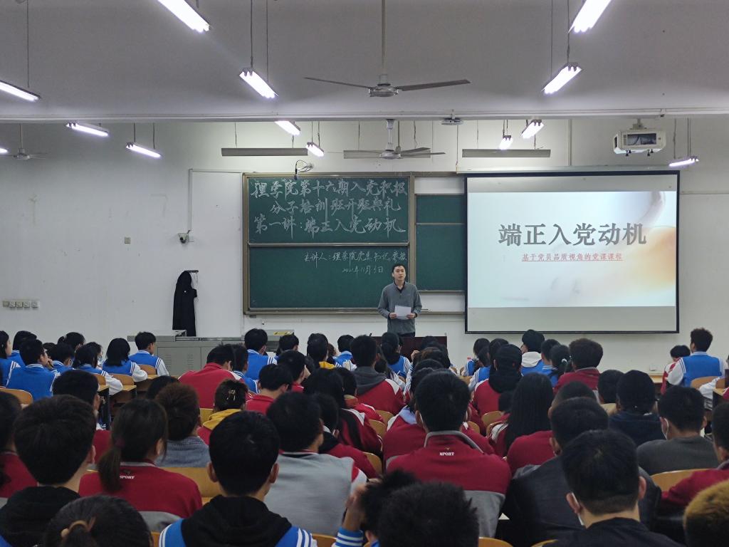 开班仪式结束后,廖书记以“端正入党动机”为题给积极分子同学们上了生动的第一课。廖书记从习近平总书记的讲话引入,介绍了新形势下党面临的“四大考验”和“四种危险”,强调党员发展必须把政治标准放在首位,要有坚定的理想信念、无畏的担当精神、真挚的人民情怀、鲜明的问题导向、高度的自觉自信。最后,廖书记勉励学员们不忘初心、坚定信念、勤奋学习、全面发展,增强“四个意识”,坚定“四个自信”,做到“两个维护”,为实现第二个百年奋斗目标、实现中华民族伟大复兴的中国梦而不断奋斗。