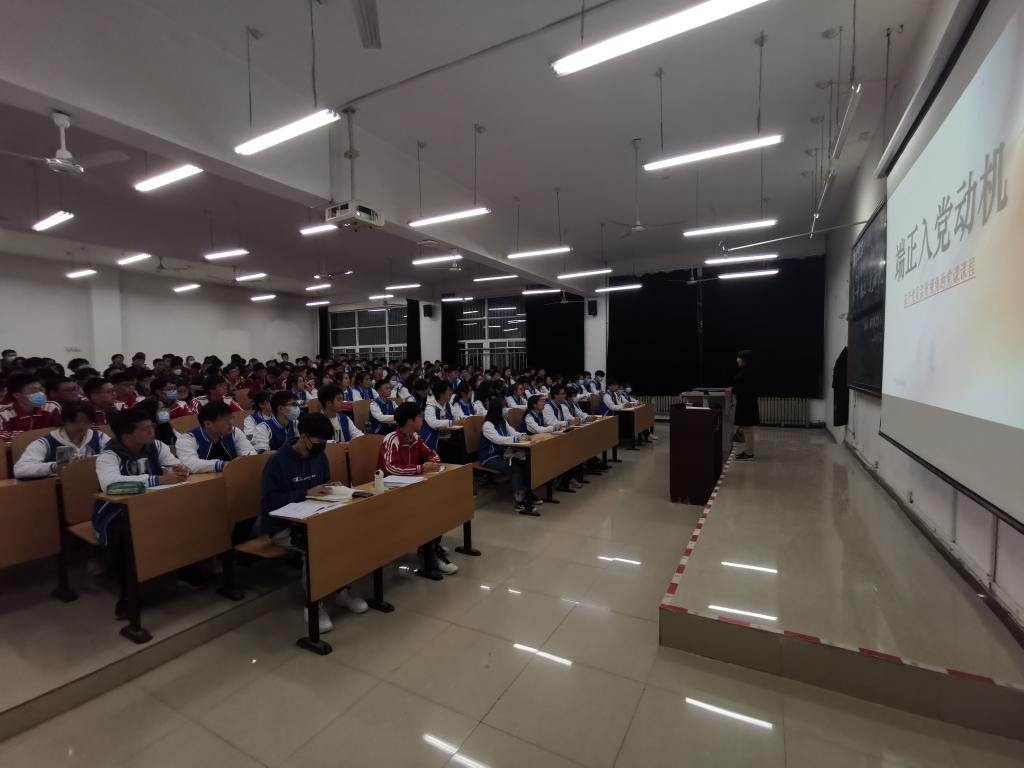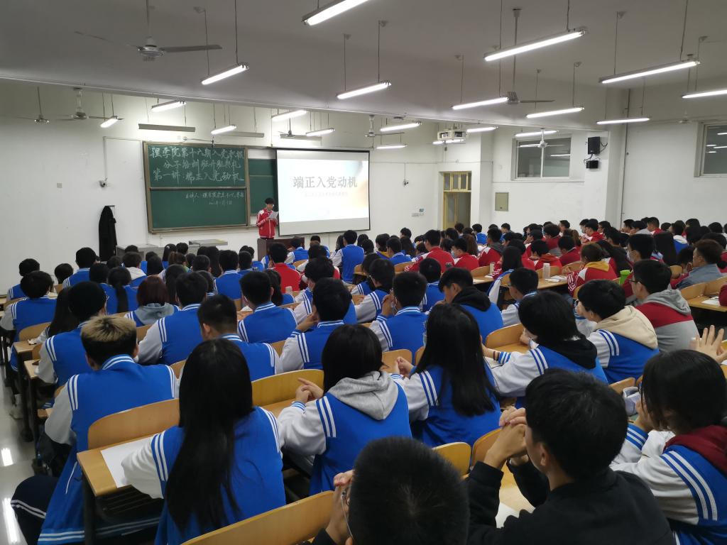 第十六期入党积极分子培训班开班典礼暨第一讲——“端正入党动机”在鄠邑校区教学B区121教室举行。学院党委书记廖敏主讲,学生管理办公室主任丁亦喆主持,各年级辅导员及198名学员参加学习。