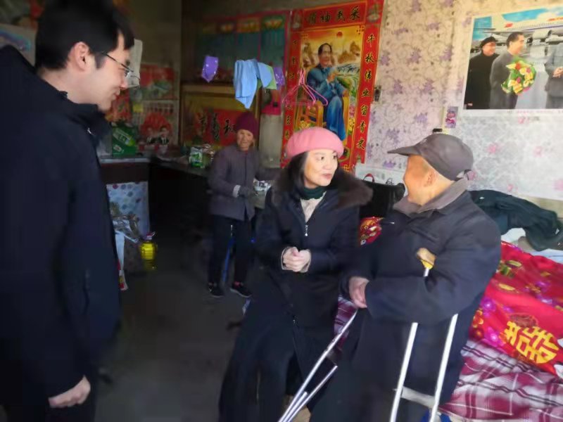 2021年11月10日,院党委书记廖敏一行6人,冒着严寒,前往永寿县永平镇坚固村看望学院脱贫帮扶对象陈春轩一家。