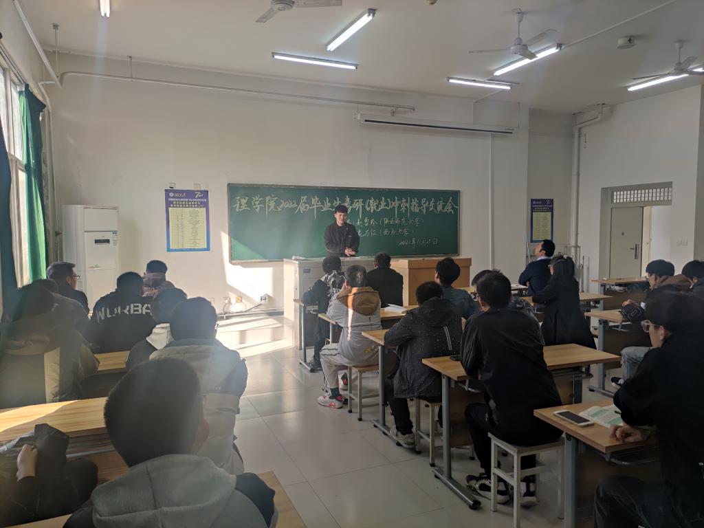 考研学子的建议、寄语和忠告;何洋同学分享了自己两次考研的经历,在应试技巧方面给全体考研学子做了很好的交流。交流会上,学工办主任、2018级辅导员丁亦喆向全体同学通报各班目前的就业进展,分析就业考研中存在的问题,厘清下一步就业和考研工作的重点。学院党委副书记马小刚最后做了总结讲话,他深刻分析了近三年全国硕士研究生招生考试现状,裸聊