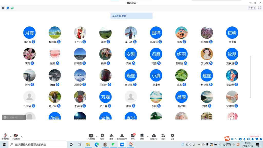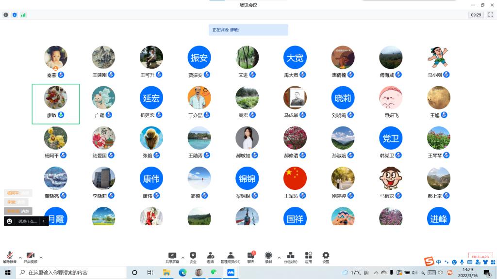 在腾讯会议中召开了线上全院教工大会。会议由学院党委书记廖敏主持,全院教职工参加了本次大会。