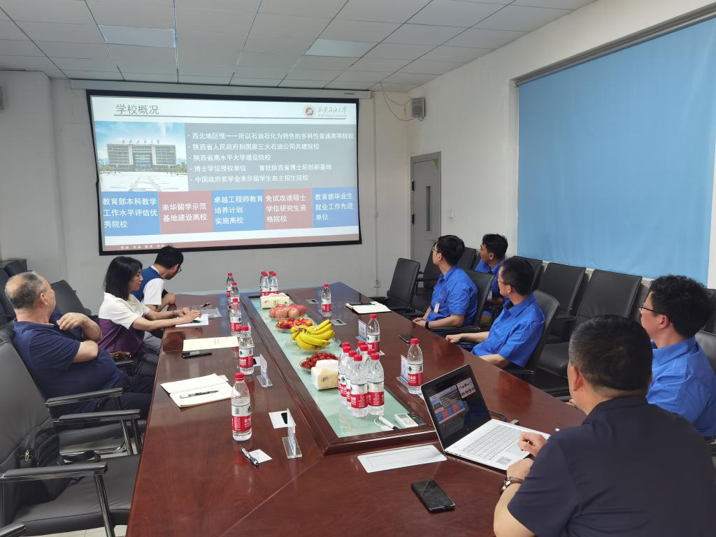的发展历程和学科布局,介绍了光学工程硕士研究生培养情况以及光电传感测井、油气资源光纤探测、油藏光纤动态检测等方面的研究特色。他着重介绍了学院现有四个本科专业的培养特色、就业考研现状,结合企业需求,推荐毕业生就业。座谈中,与会双方对校企合作进行了深入研讨,并就“大学生就业实习基地”协议的签订和深入落实进行了详细交流。