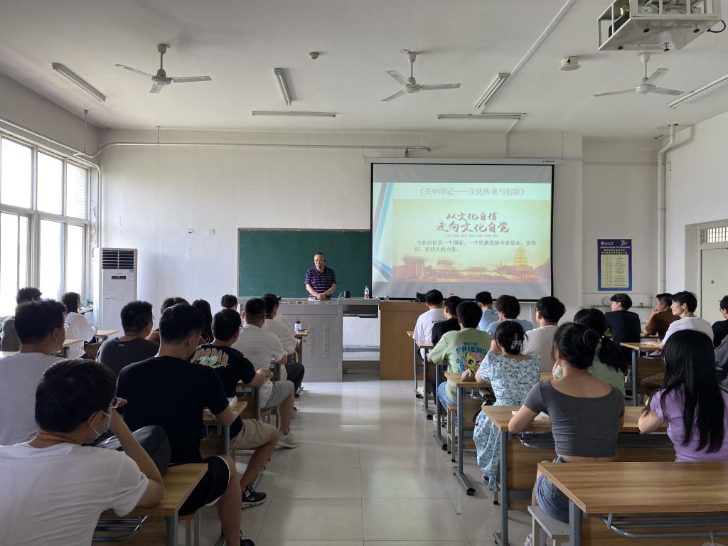 为进一步增强大学生的文化自信,营造良好的文化交流氛围,促进大家从文化自信走向文化自觉,6月17日下午,学院特邀我校高评中心副主任易和平老师为同学们讲授题为“关中印记—文化传承与创新”的专题思政课。本次课程在鄠邑校区志远楼502教室举办,学院党委副书记马小刚主持,全体研究生一年级学生现场听讲。