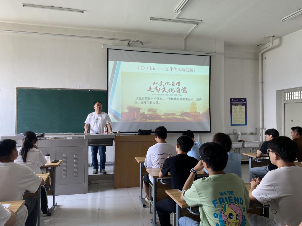 易和平老师从深入学习习近平总书记关于“文化自信”的重要论述入手,从地理位置出发,介绍了“关中”的概念及相关的历史传承,从周朝到秦朝再到汉朝,生动形象地讲述了“三秦古都”自古以来的文化大繁荣景象;随后,易老师从壁画,生活细节,诗歌与音乐等方面,阐释了唐朝文化对于现代人们生活的影响;接着,他结合关中地区婚丧嫁娶等传统民俗、秦腔等民俗文化、饮食文化展开讲授,加深了同学们对于文化传承的理解。易老师还以地理位置为例,介绍了“八水润长安”的流域文明。最后,他以“关学”为例,介绍传统文化的价值传递——“为天地立心,为生民立命,为往圣继绝学,为万世开太平”。
