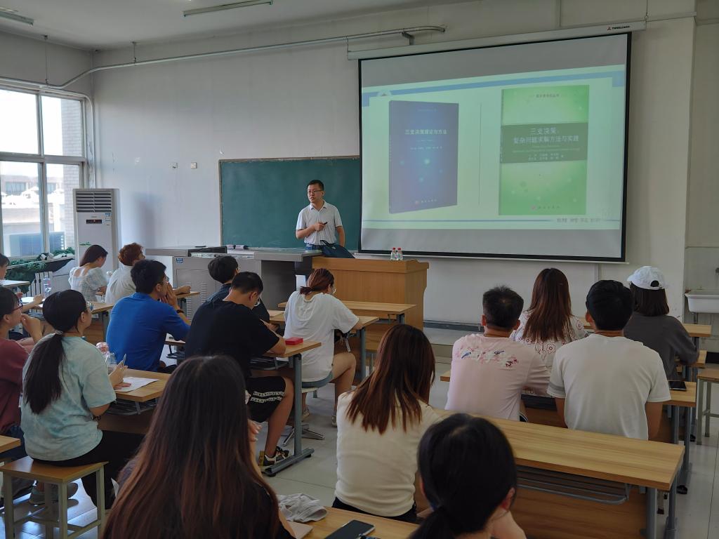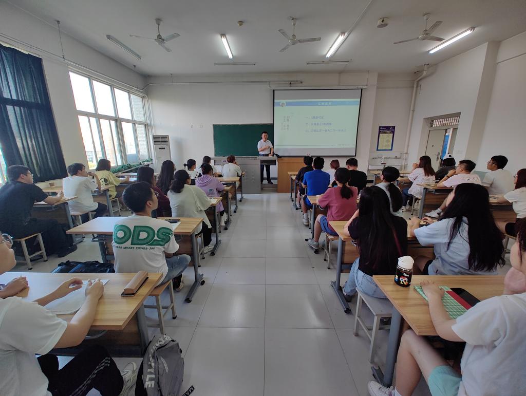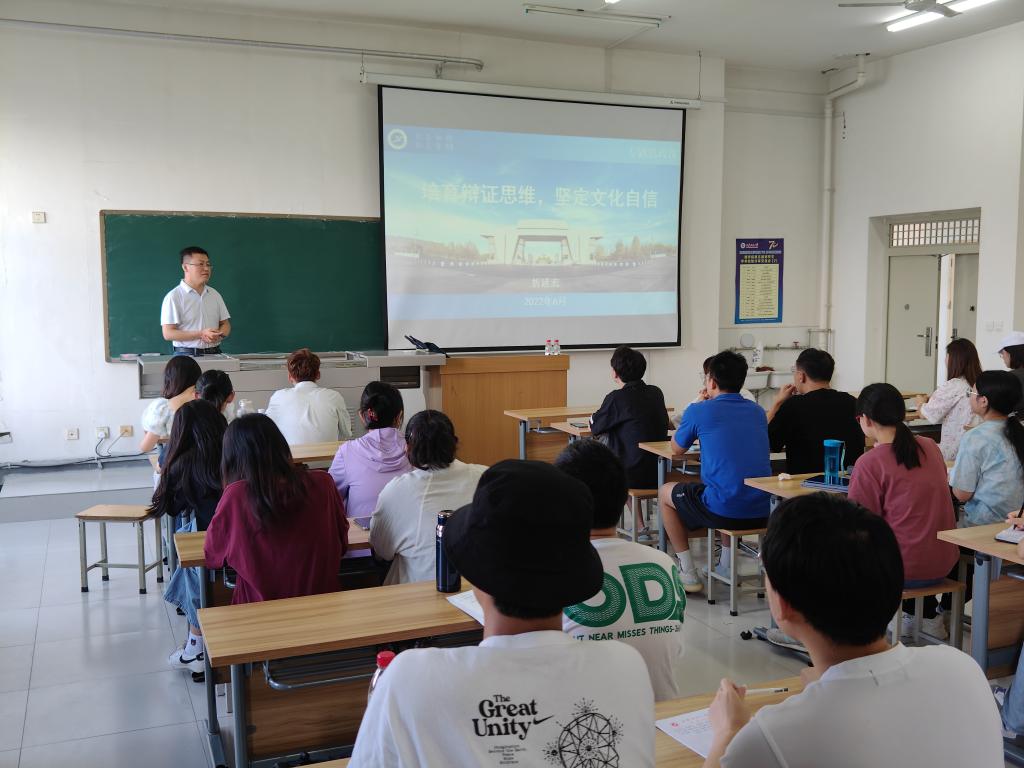 6月20日上午,副院长折延宏在鄠邑校区志远楼502教室,为数学专业本科同学讲授题为“培育辩证思维、坚定文化自信”的专题思政课,数学专业40余名学生党员和积极分子现场听讲。