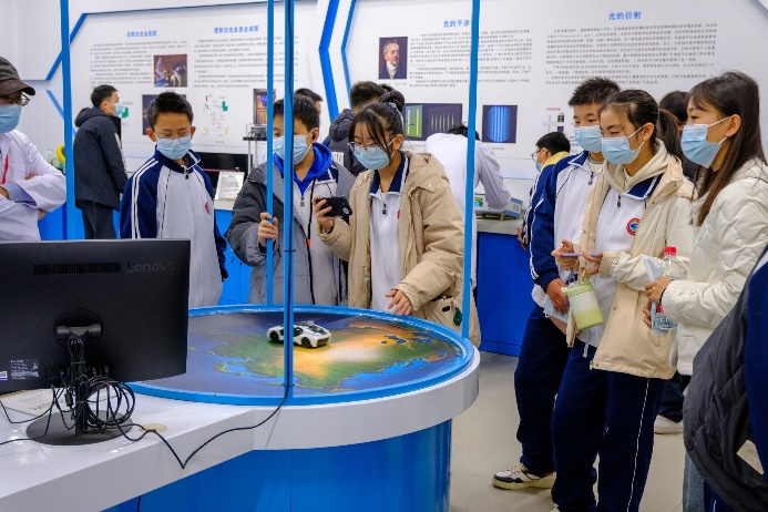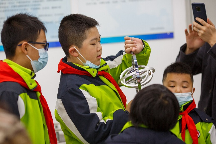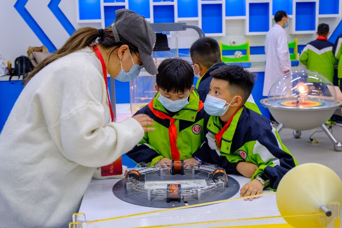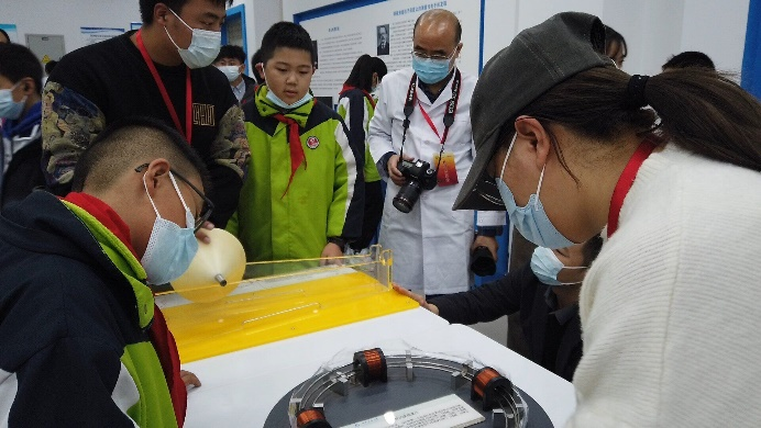 教师和学生志愿者对演示实验项目的原理、操作方法和注意事项进行了详细的讲解和演示,引导代表团的中小学生认真观察实验现象、提出问题、主动探索,并指导大家亲身体验各个实验项目。其中特斯拉放电、茹科夫斯基转椅、锥体上滚、电磁炮、GPS全球定位系统演示仪、彩色影子等项目给学生们留下了深刻的印象。