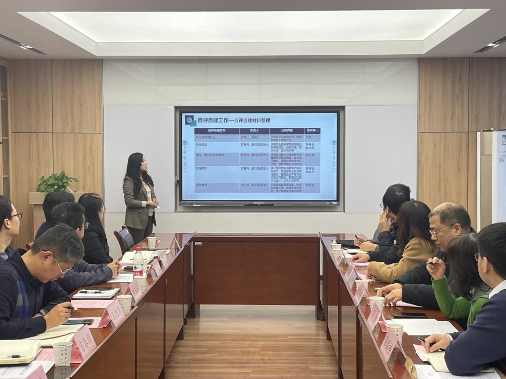 在自评自建工作、线上及入校评估、亮点工作几个方面的具体开展情况,重点就本科生参与教师科研项目、如何做好课程思政、科教融合等分享了宝贵的经验。