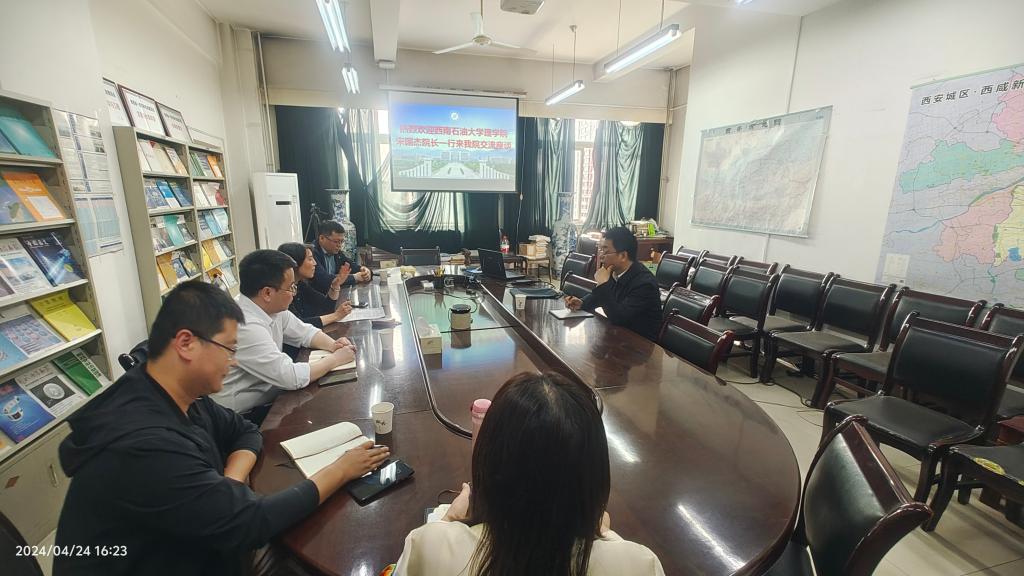 走访交流。学院党委书记廖敏、副院长折延宏、陈国祥,应用数学系副主任刘孝艳、马儇龙等在学院501会议室与宋国杰院长进行了深入交流。