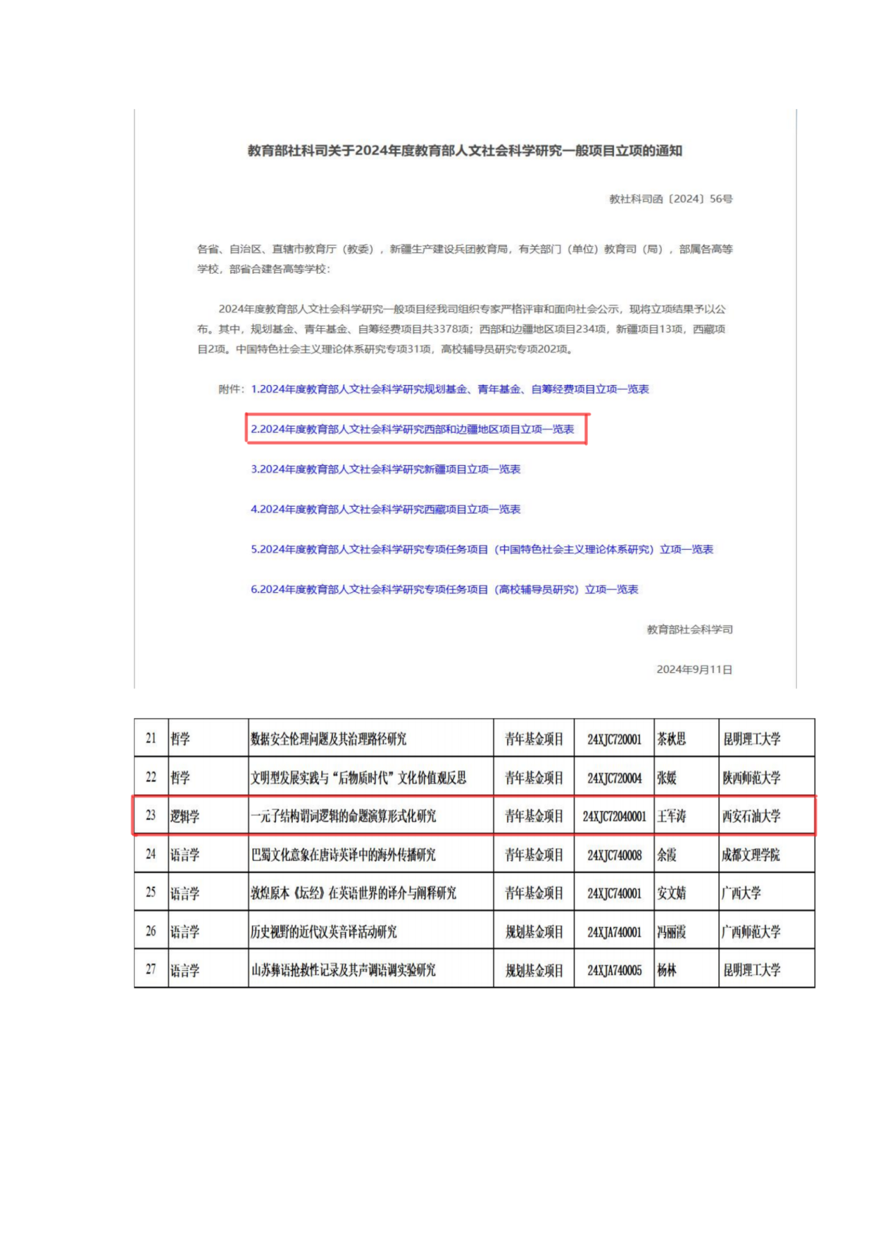 近日,教育部社科司公布了2024年教育部人文社会科学研究一般项目的立项名单,裸聊