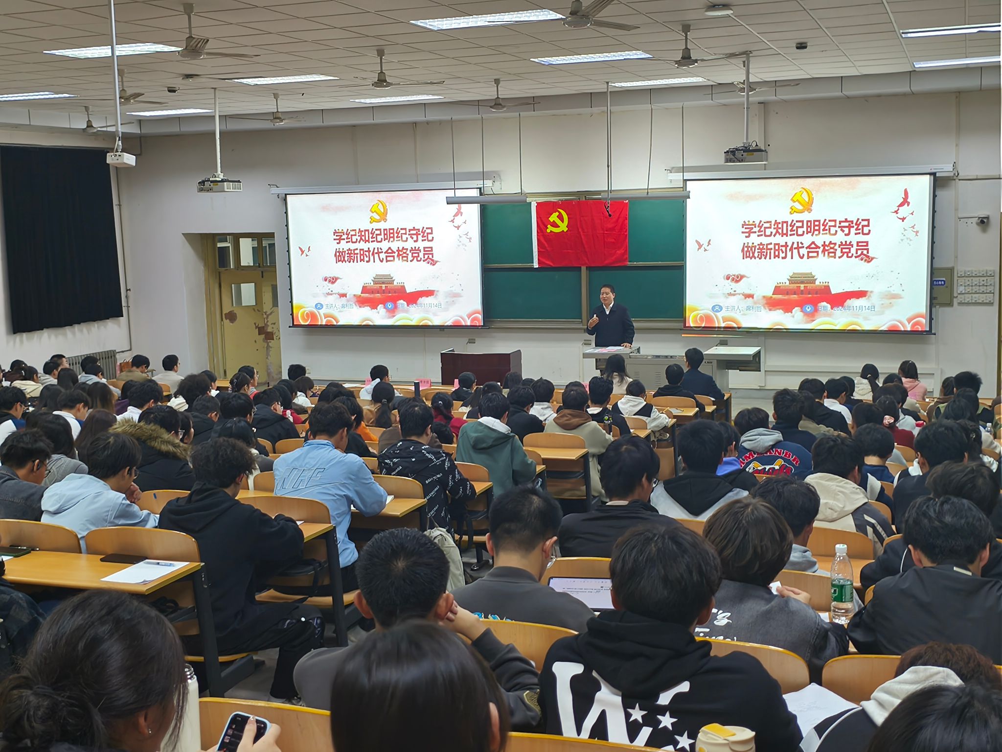 党委书记席利哲作了培训班第一讲。他以《学纪知纪明纪守纪,做新时代合格党员》为主题,通过与多名同学互动提问的方式深入浅出地讲解了新时代合格党员的标准和内涵,一要讲政治、有信念,确保在铸魂立根上合格;二要讲规矩、有纪律,确保在遵规守纪上合格;三要讲道德,有品行,确保在崇德修身上合格;四要讲奉献、有作为,确保在干事创业上合格。他指出,学纪、知纪、明纪、守纪是每个党员的必修课,学纪是基础,知纪是前提,明纪是根本,守纪是关键,要深刻认识党的纪律在教育引导、警示预防、惩戒纠错方面的功能,自律和他律相结合的实质,以及加强党的纪律建设的重要性。他为全体参训学员解读了《中国共产党纪律处分条例》的主要内容和负面清单,以典型案例生动诠释了党的纪律的严肃性和权威性。最后,他鼓励大家努力学习,争取早日入党,把遵规守纪内化为思想和行动自觉,敬畏法纪,从小事做起,在日常坚守,以新时代合格党员的标准严格要求自己,跑好中国式现代化的接力棒,在民族复兴的宏伟征程中写就青春的华彩篇章。