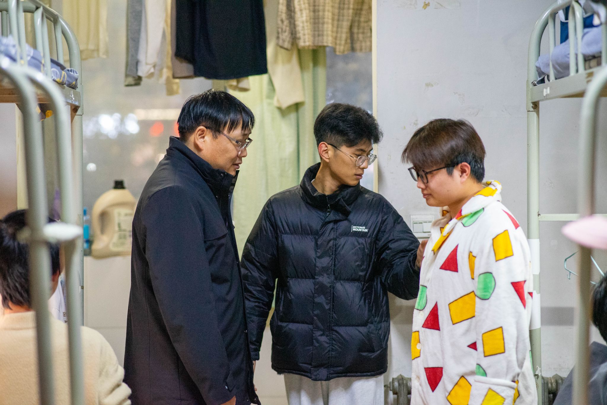 副书记杨富民、2022级以及2023级辅导员李猛共同走访了学院学生宿舍,与学生面对面交流,了解他们的生活和学习情况,并重点检查了宿舍的安全隐患。杨富民强调了宿舍安全的重要性,提醒学生们要时刻保持警惕,注意用电安全、防火防盗等。同时,他还鼓励学生们要相互关心、相互帮助,共同维护宿舍的安全和稳定。