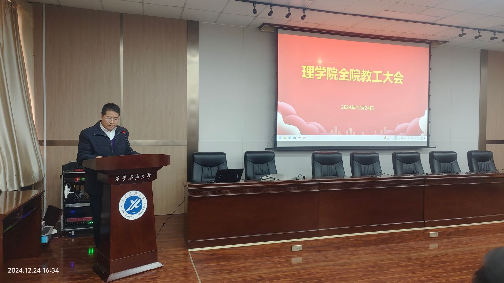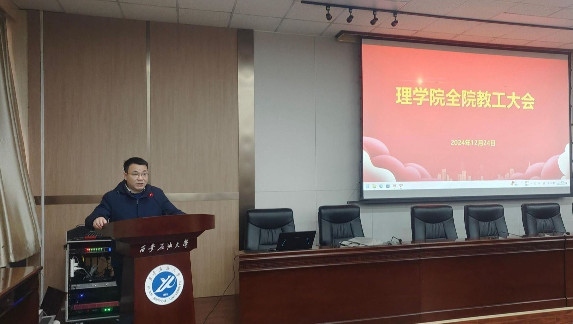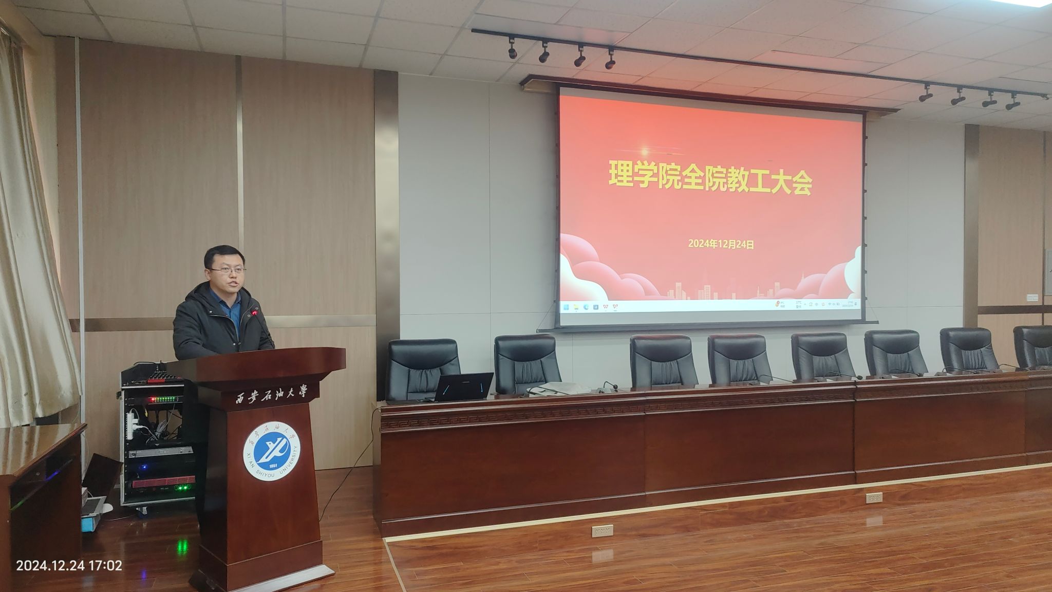 在雁塔校区会议中心第五会议室召开全院教职工大会,听取学院领导班子2024年度述职述廉。会议由学院党委书记席利哲主持,学院全体教职工参加了本次大会。