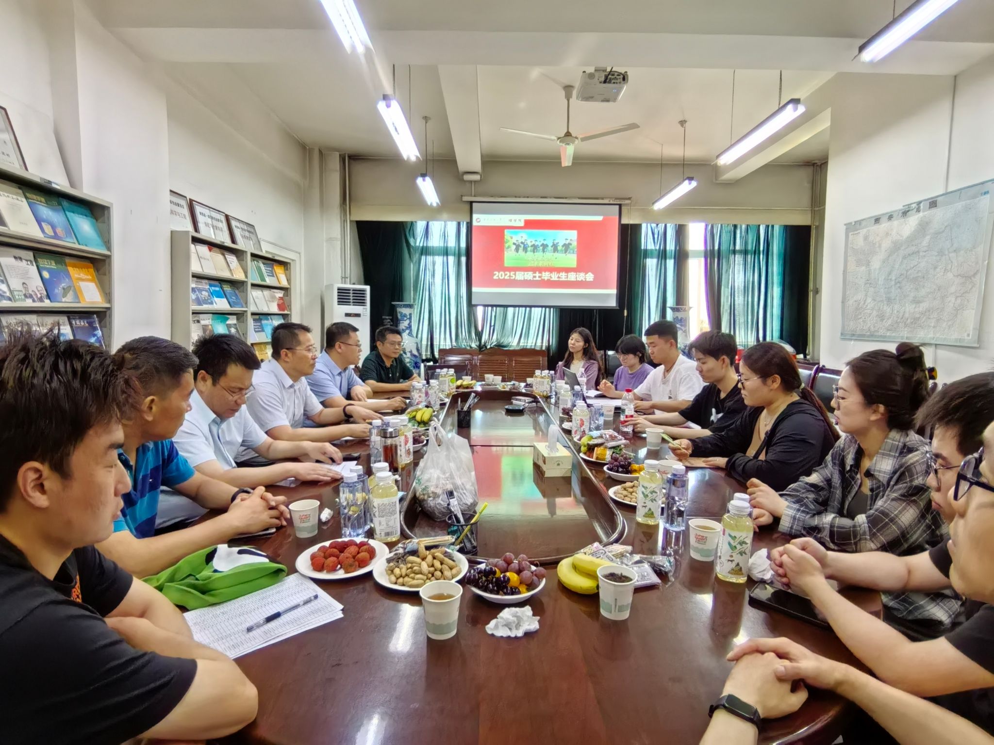 2025届硕士毕业生代表座谈会在2教501会议室温馨启幕。党委书记席利哲、院长折延宏、副院长陈国祥,导师代表丁继军、刘帅与毕业生代表齐聚一堂,以“承毕业之志,启未来新程”为主题,共话学术成长,畅谈未来发展。