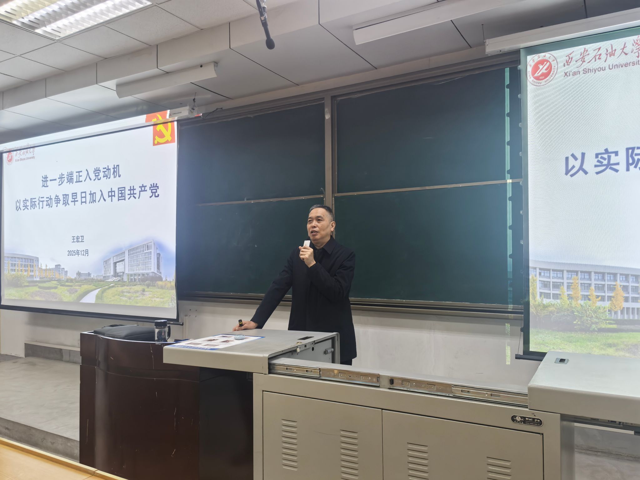 王宏卫结合《中国共产党党员教育管理工作条例》《全国党员教育培训规划》《中国共产党纪律处分条例》等文件要求,要求全体学员把端正入党动机,坚守初心使命作为争取入党的首要课题;其次对标《中国共产党章程》《关于新形势下党内政治生活的若干准则》等制度规范,强调全体学员要将锤炼党性修养、提升政治品格作为自我提升的核心任务;他结合高校党建实际,通过剖析大学生入党积极分子培养考核典型案例,引导学员将理论认知转化为实践自觉,在知行合一中筑牢信仰之基。“青年是党的事业的继承者,端正入党动机是入党的第一步,更是一生的必修课。”他勉励全体学员牢记共产党人初心使命,坚定理想信念,恪守党员品质,积极向党组织靠拢。