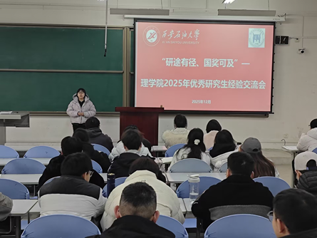 2025年优秀研究生经验交流会在鄠邑校区博览楼A124教室顺利举行。研2023级国家奖学金获得者王满银、李微、乌嘉诚,研2025级全体同学参加,研究生辅导员马小梅主持会议。