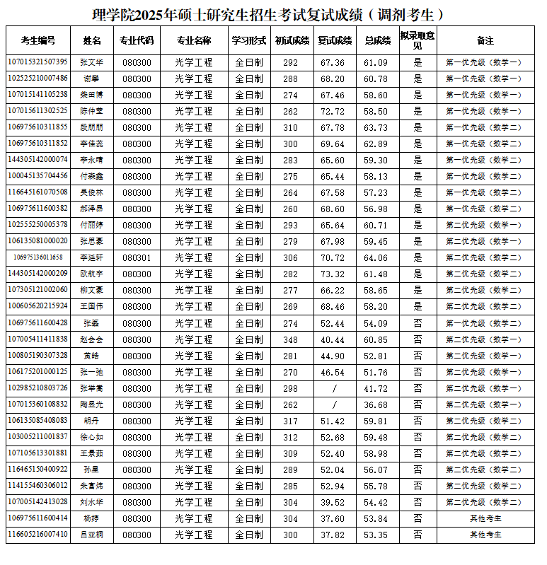 根据教育部及陕西省教育考试院相关文件精神和要求,现将裸聊 2025年硕士研究生招生复试成绩(数学、光学工程调剂考生)(第一批)予以公布,如有异议,请联系(029)88382735进行反馈。