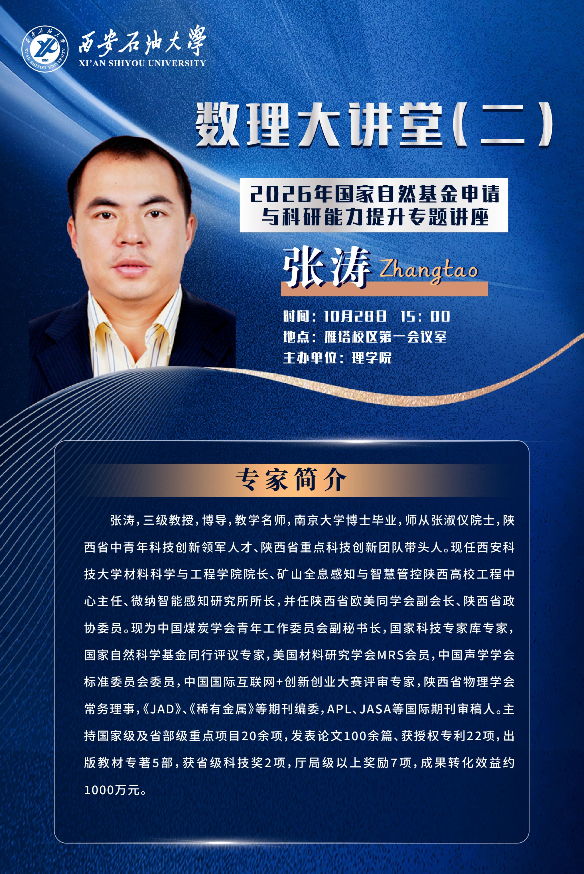 数理大讲堂(二)----2026年国家自然基金申请与科研能力提升专题讲座
