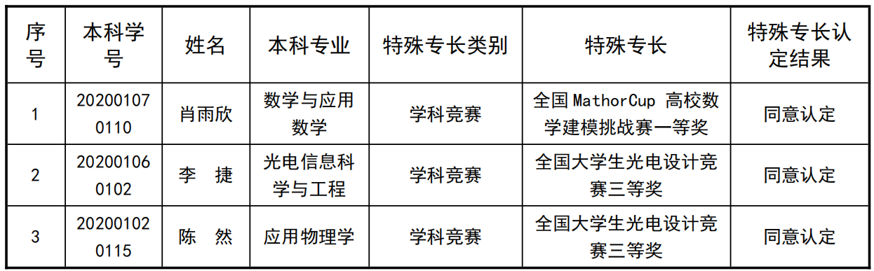 关于做好2024年推荐优秀应届本科毕业生免试攻读硕士学位研究生工作的通知》的要求,学院于2023年9月20日在2号教学楼209会议室进行特殊专长认定答辩会,同意通过特殊专长审核认定的学生名单如下: