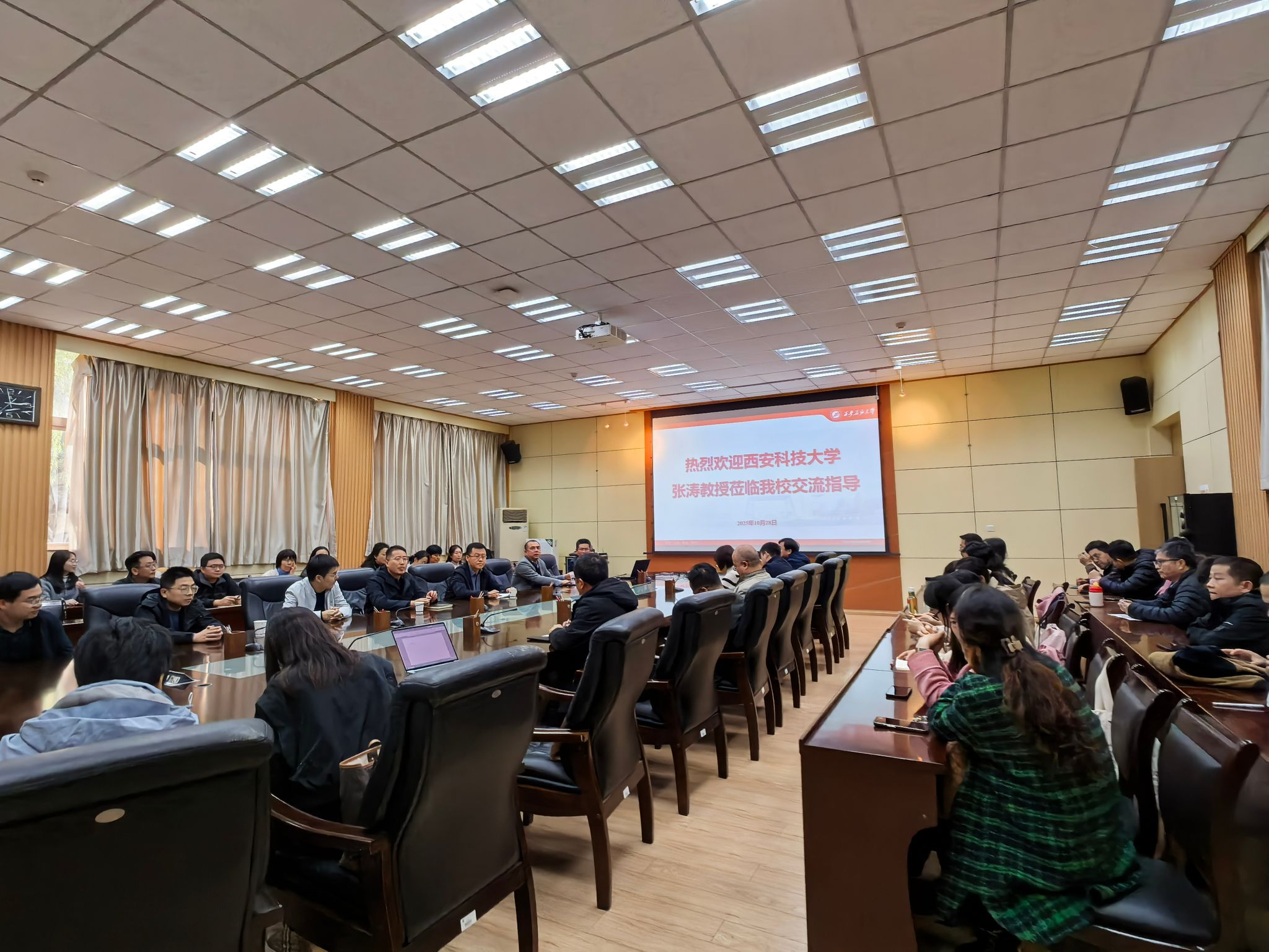 在雁塔校区会议中心第一会议室召开2026年度国家自然科学基金申报动员大会,邀请了西安科技大学张涛教授做专题辅导。院长折延宏、党委书记席利哲、副院长刘帅、具有博士学位、副高级及以上职称教师参加了会议。会议由折延宏主持。